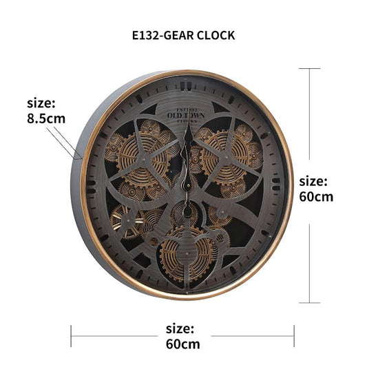 Classic Old Town Design 60cm Decorative Gear Clock Gold