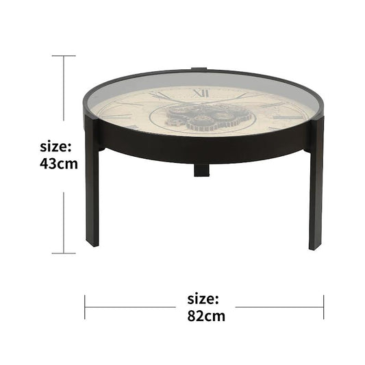 2 Piece Round Vasco Map Moving Cogs Clock Coffee Table Set Black & Gold