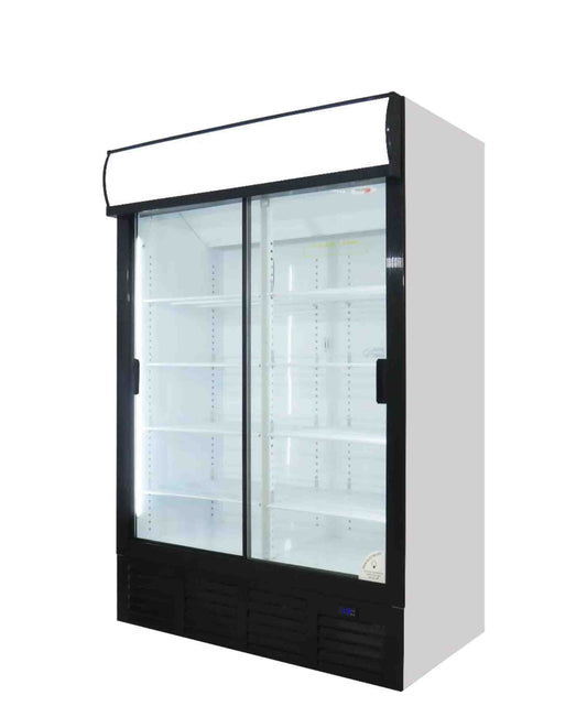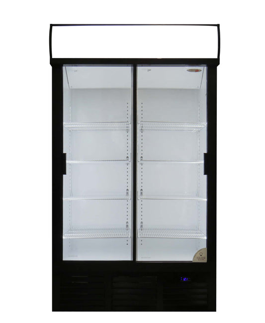Fridge Star Sliding Double Full Door Beverage Cooler - Black & White