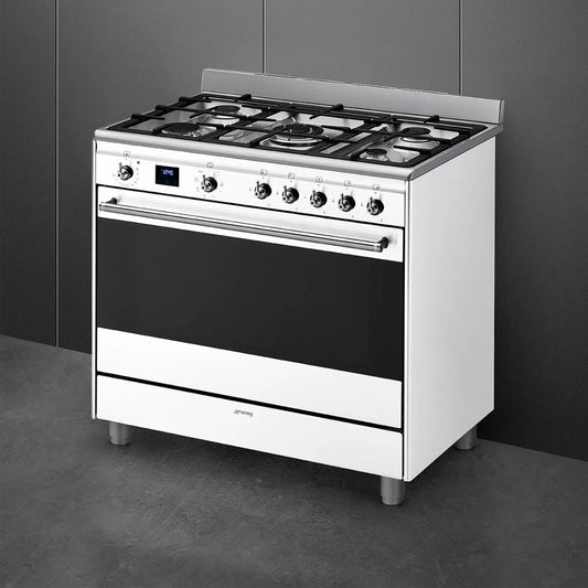 Smeg 90cm White Cooker With Gas Hob - SSA91MAWH2