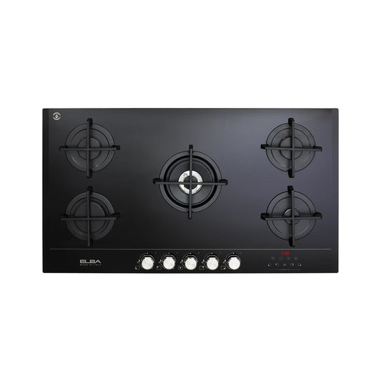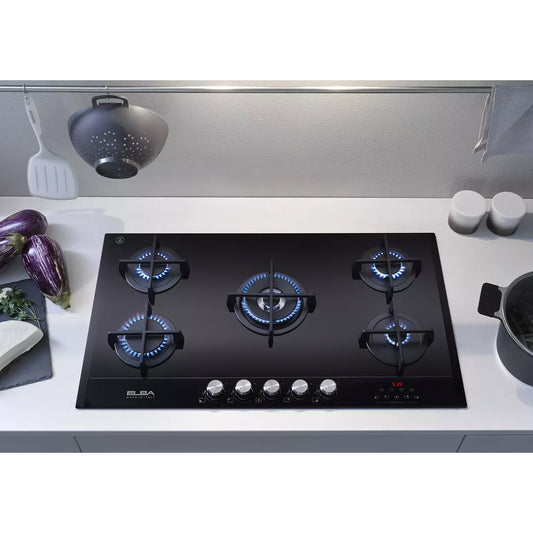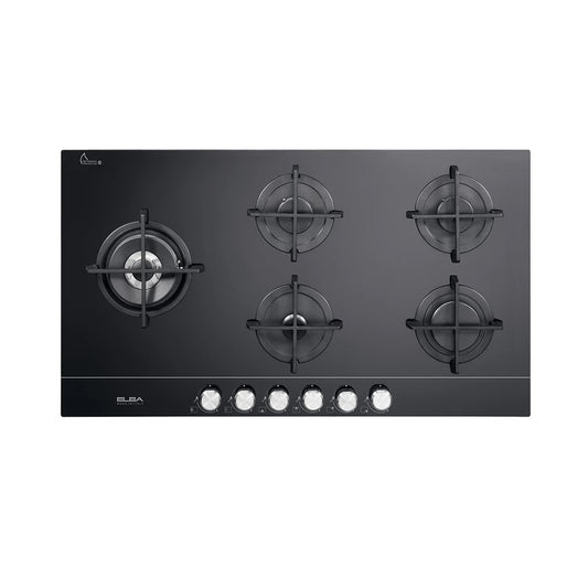 Elba Elio 90cm 5 Burners Gas Hob With Center Wok Burner - Silver