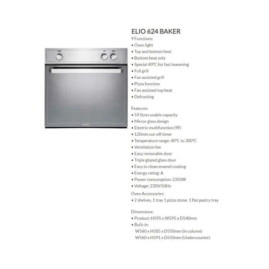 Elba 60cm Electric Multifunction Oven - Silver