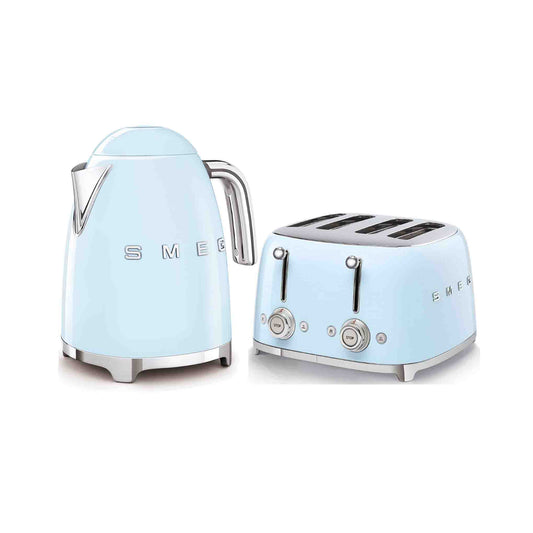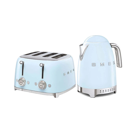 Smeg Retro 4 Slice Square Toaster & Variable Kettle Combo - Blue