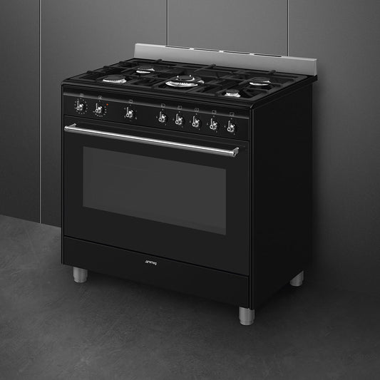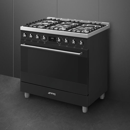 Smeg 90cm Matte Black Cooker with Gas Hob - C9MAMBSSA2