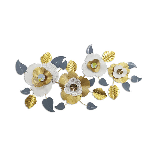 Urban Decor Flower & Leaf Design Wall Decoration Gold & White