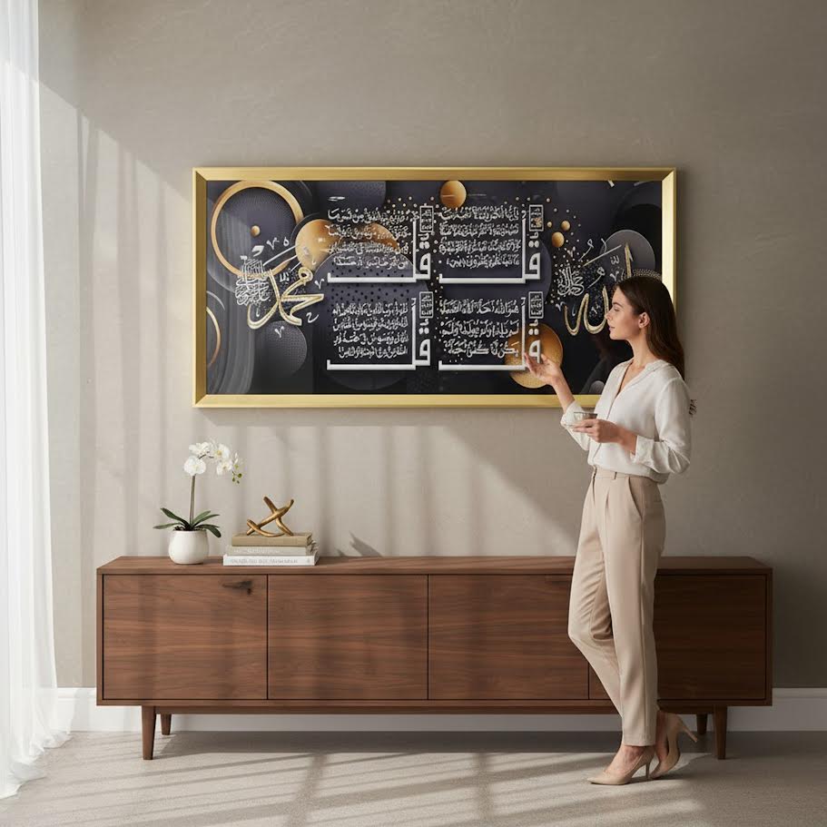 Elevate your space with the Aura Islamic The 4 Quls Painting, a beautiful representation of faith and serenity. This artwork features the revered four Quls, offering spiritual protection and peace. Crafted with meticulous detail, it’s perfect for creating a tranquil atmosphere in any room while reinforcing your devotion. Enhance your home or office with this meaningful piece that inspires reflection and calm.