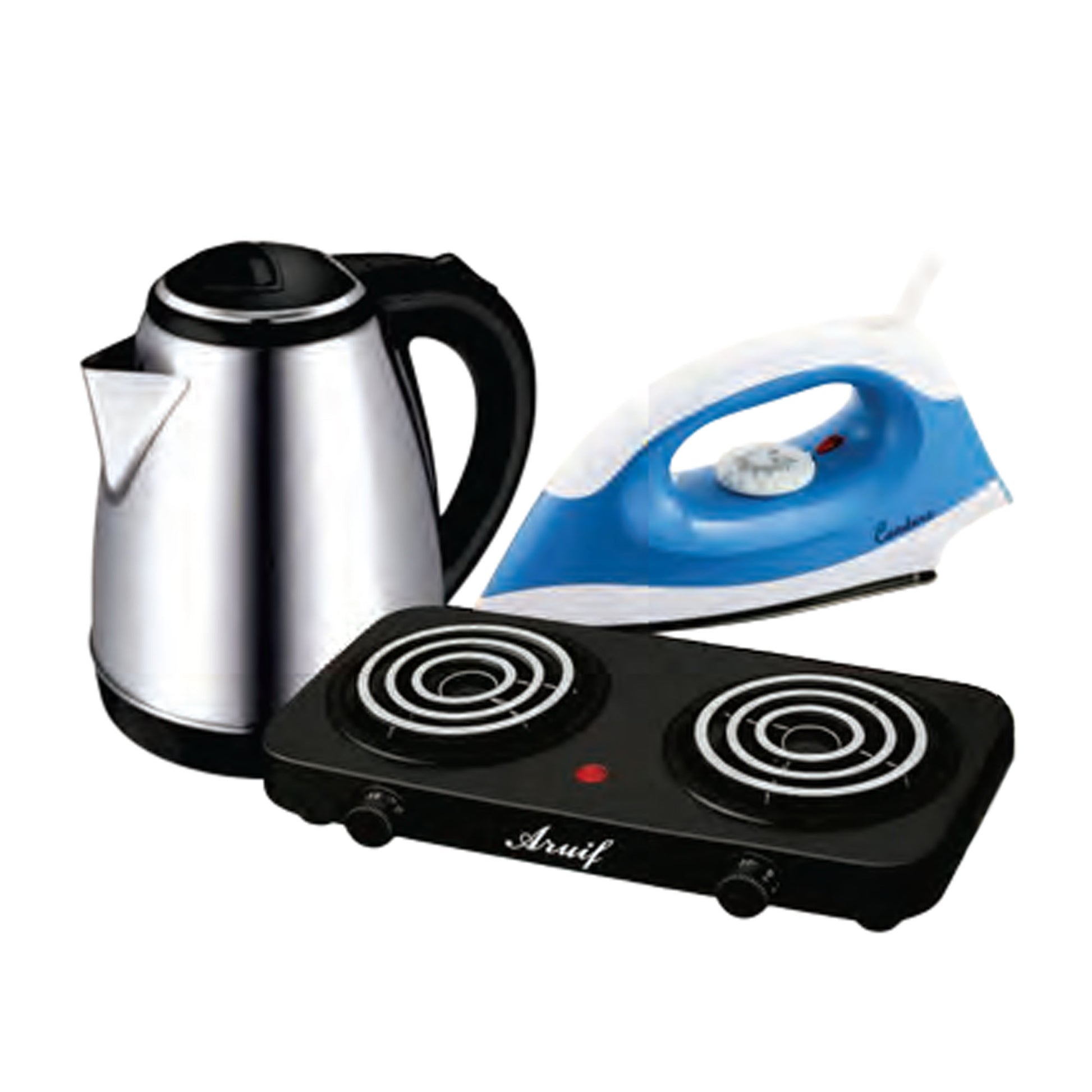 Condere Budget Combo brings essential kitchen and home essentials together in one smart purchase. This practical bundle includes a reliable kettle for quick hot water, a 2-plate stove for everyday cooking flexibility, and a powerful iron for crisp, wrinkle-free clothes. Perfect for students, young professionals, or anyone setting up a home on a budget, this combo delivers everyday functionality without compromise. Save more when you buy together—get everything you need to run a smooth household at an unbeatable price.