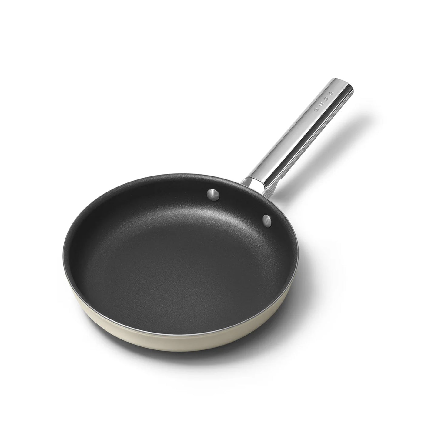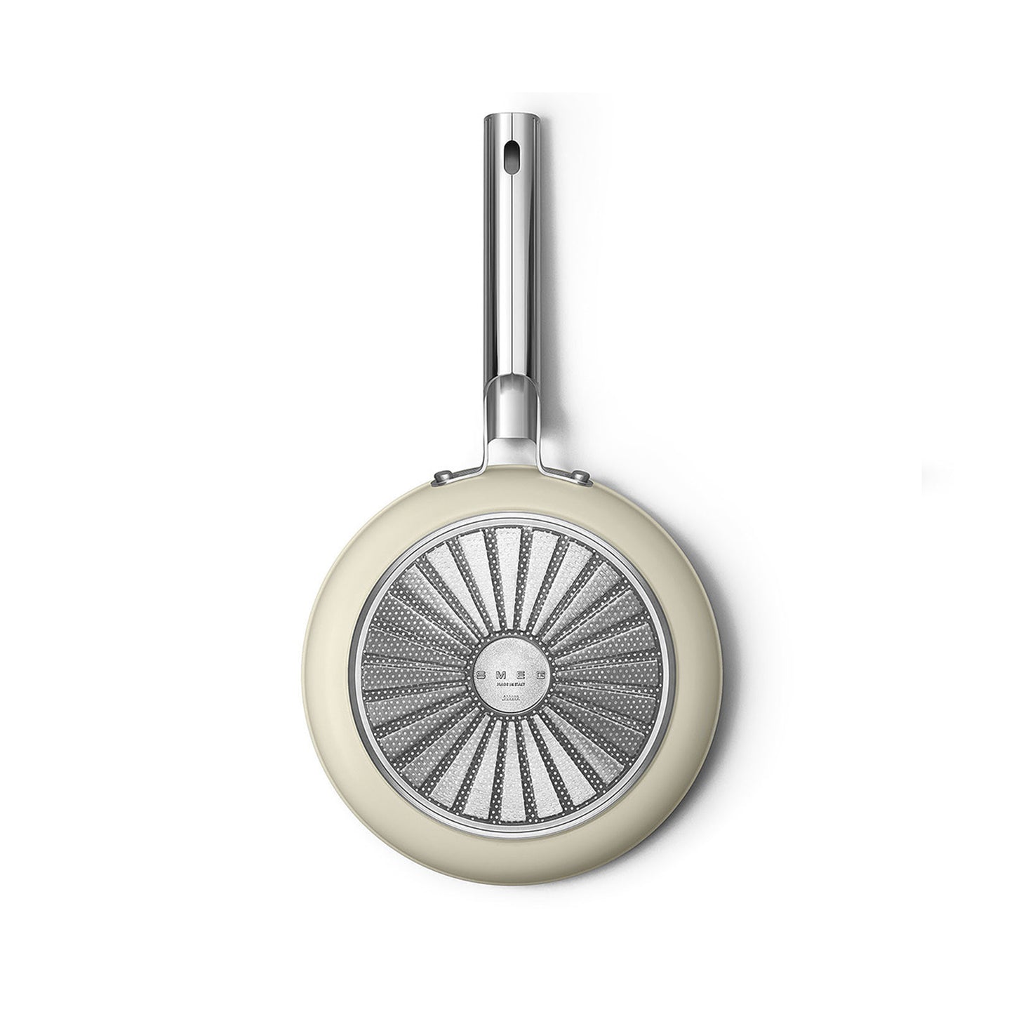 Smeg frying pans feature low sloped sides that flare outwards, a patented flat-bottomed base and an ergonomically designed stainless steel handle with a comfortable grip for easy handling.