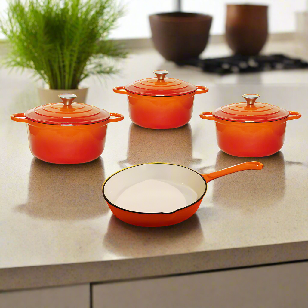 CTH 7 Piece Cast Iron Pot Set - Orange