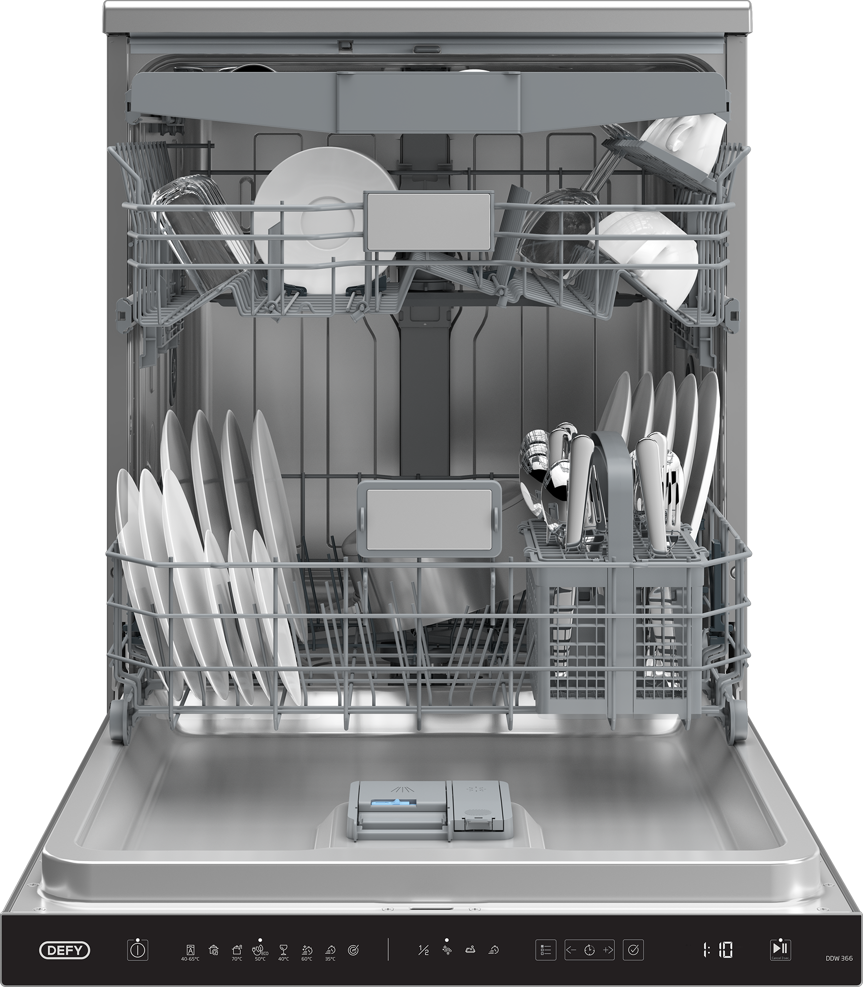 The Defy DDW366 is a premium 15-place dishwasher designed to deliver advanced cleaning performance with exceptional efficiency. Featuring innovative CornerWash Technology, it ensures powerful water coverage reaches every corner of the dishwasher for a deeper, more thorough clean — even on heavily soiled loads.