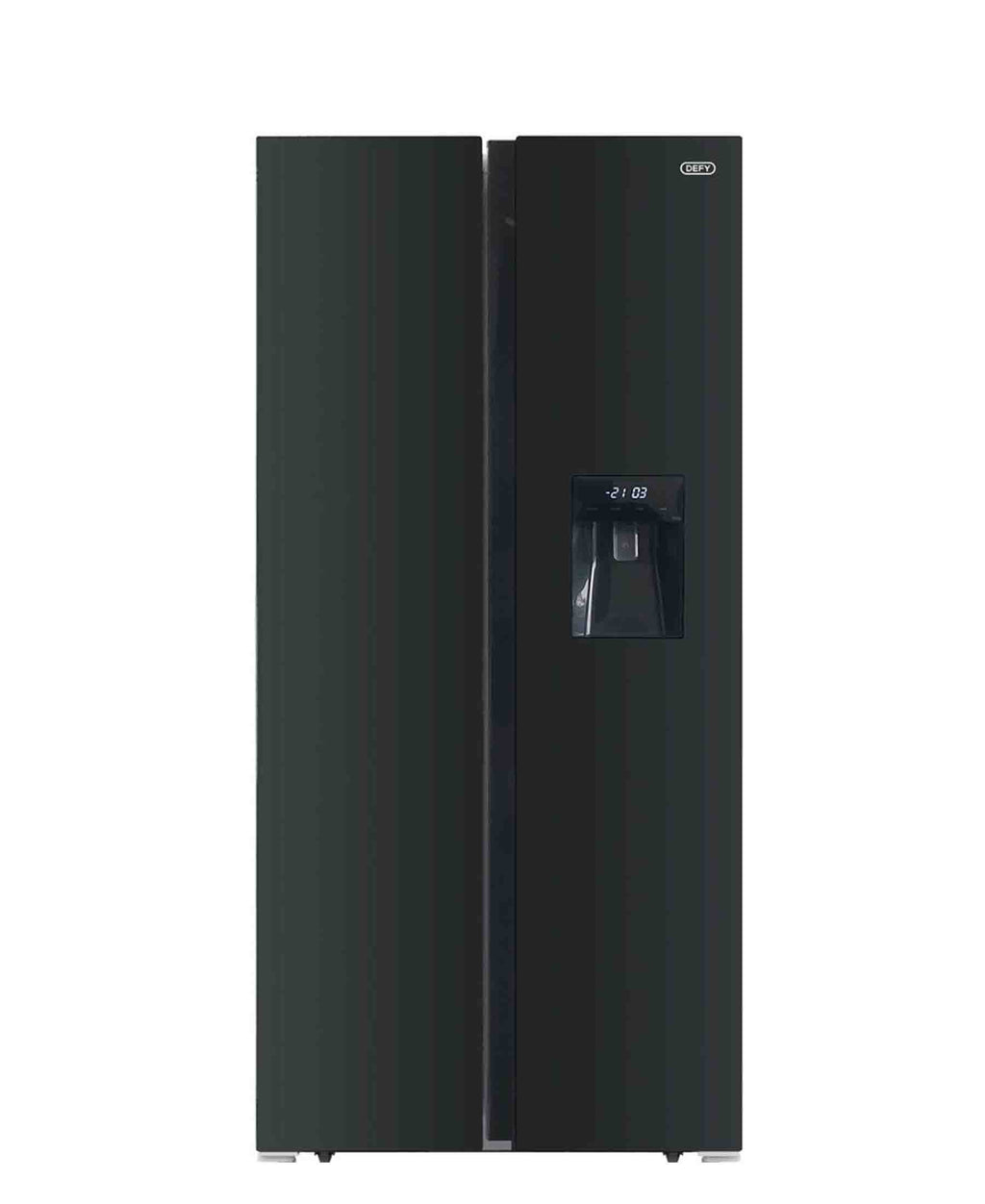 Defy 496Lt Black Glass Side by Side WD Fridge - Black