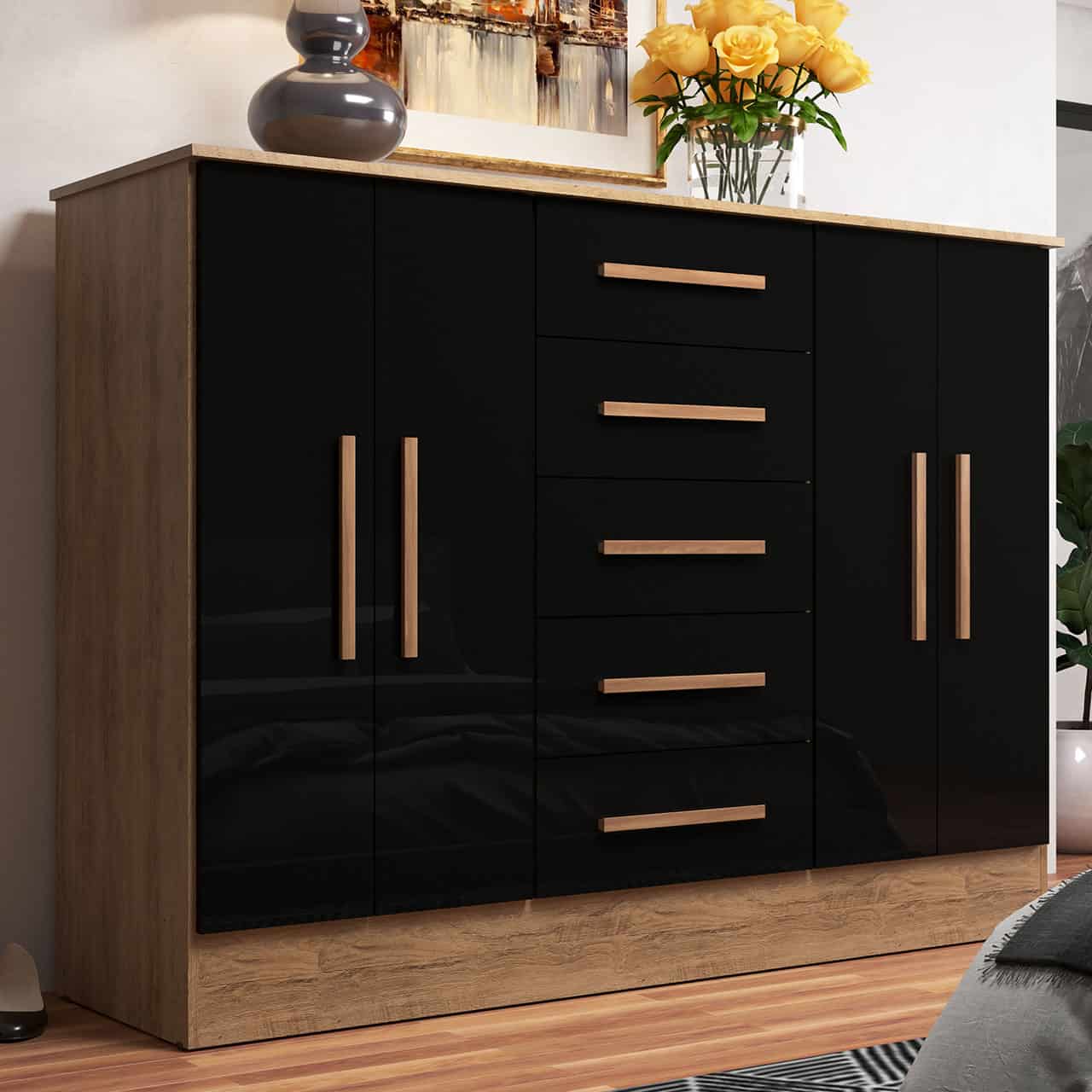 Add a touch of modern style & sophistication to your home with our exclusive range of furniture. Add some needed storage to your bedroom with this modern & compact chest of drawers. Features 5 pulling drawers & 2 closed drawers with hanger space.