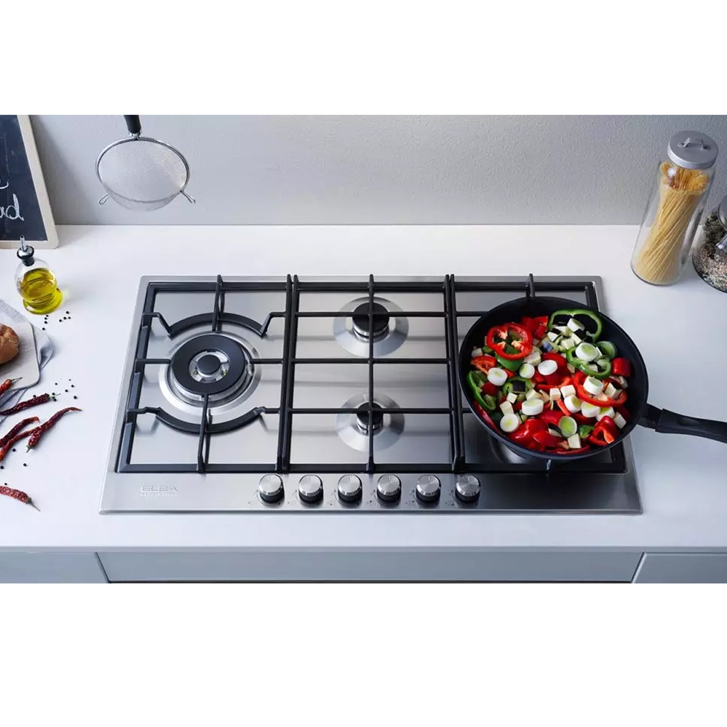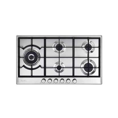 Elba Elio 90cm 5 Burner Gas Hob With Side Wok Burner ELIO 95-565 - Silver