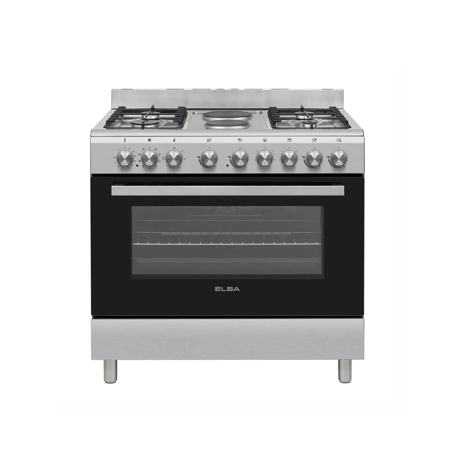 Elba Essential 90cm 4 Burner Gas/Electric Stove & Oven - Silver