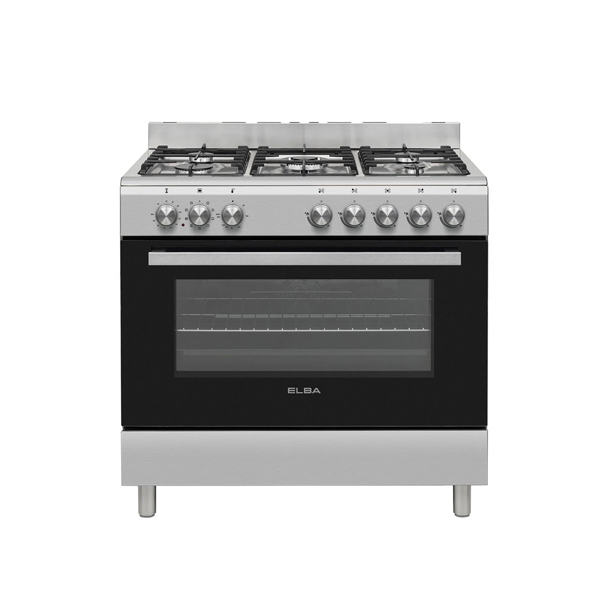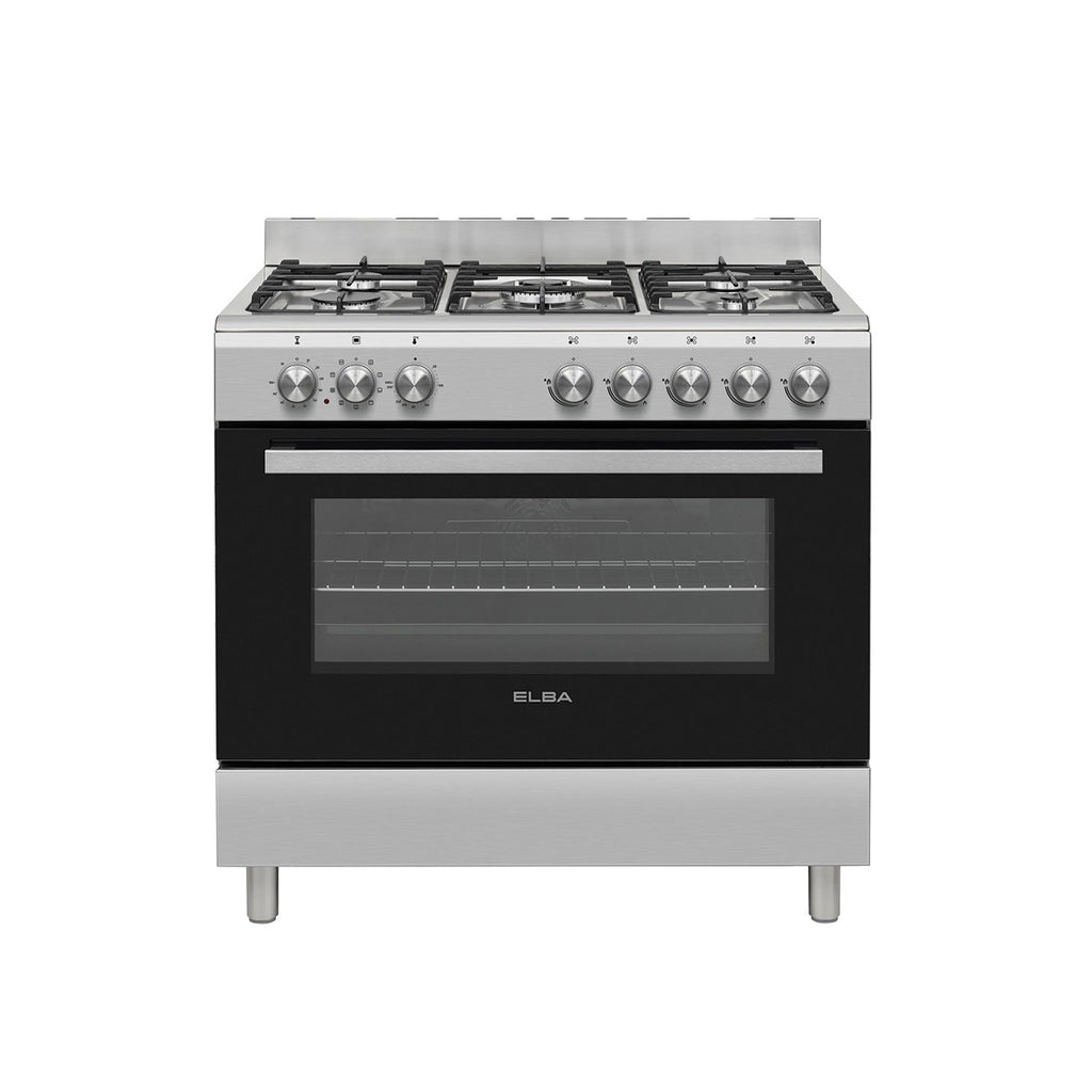 Elba Essential 90cm 5 Burner Gas Stove & Electric Oven - Silver