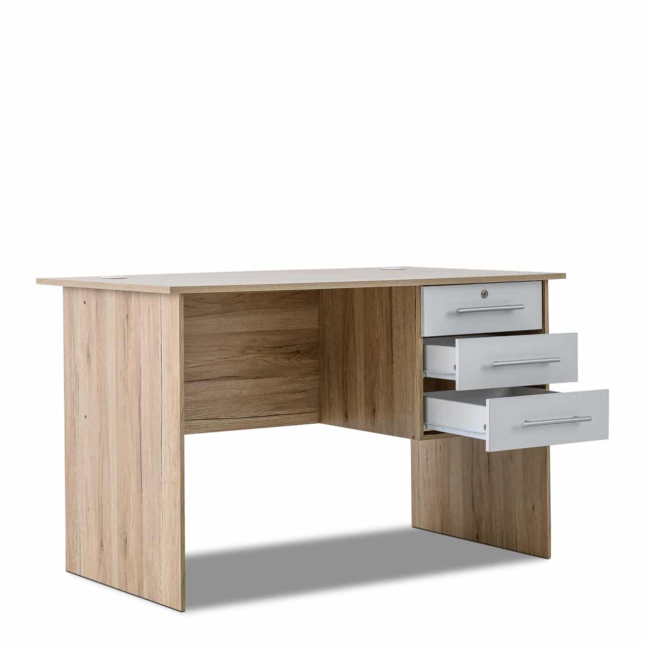 Simple designed office desk, 3 drawers for storage with a wenge finish.