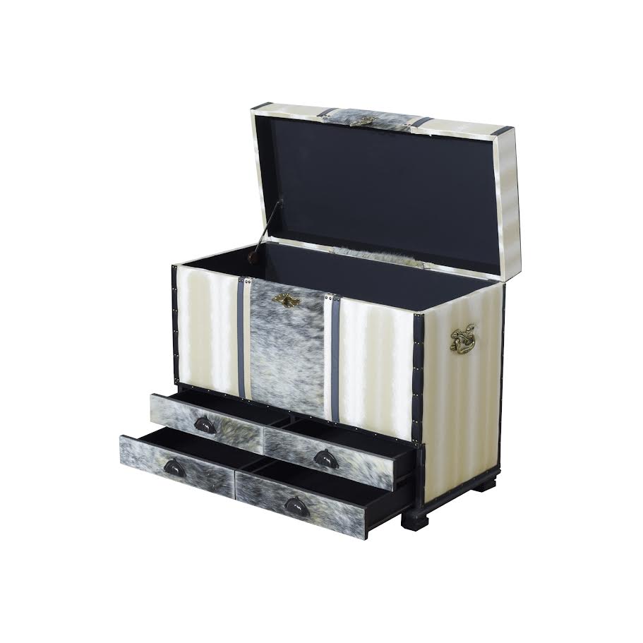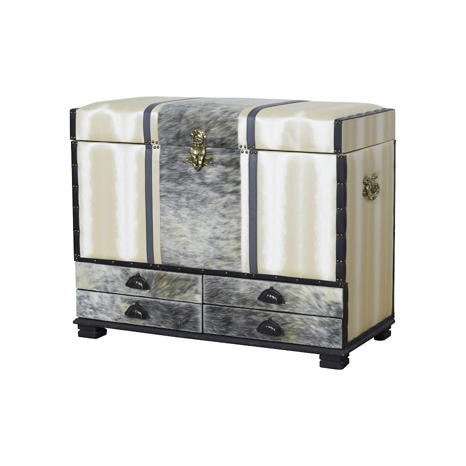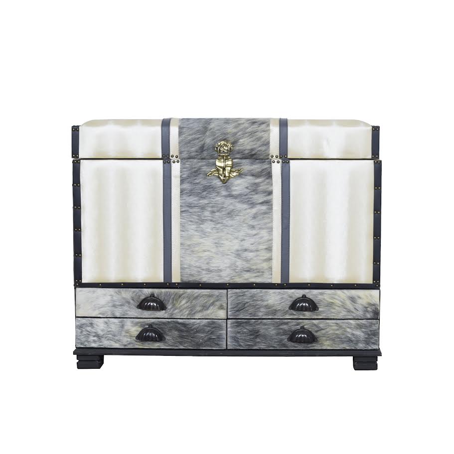 Upgrade your space with the Flair Trunk 4 Door Nguni Beige. This stunning trunk will add style and functionality to any room. Featuring four spacious doors and a unique Nguni beige design, it's perfect for storing and organizing your belongings. Elevate your home decor with this versatile and eye-catching piece!
