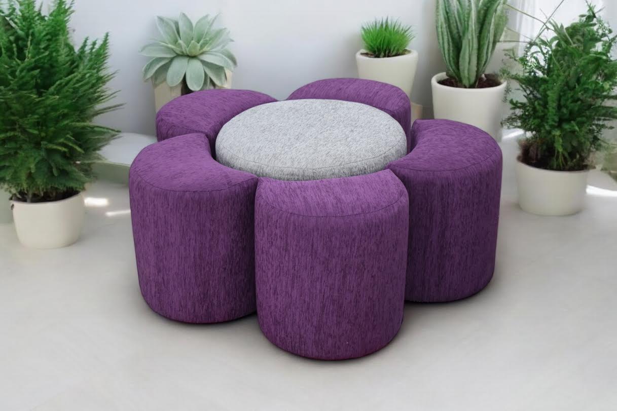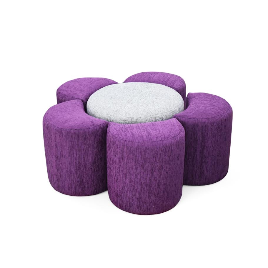 Add a touch of elegance and luxury to your home with our beautiful Flower Ottoman 6 Piece Purple set. With its intricate floral design and rich purple color, this set will be a stunning addition to any room. Relax and lounge in style while also adding a pop of beauty to your decor.