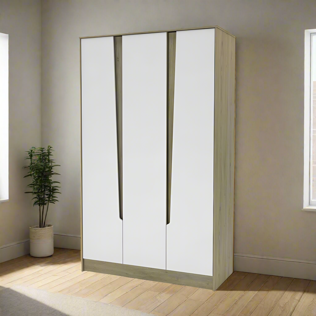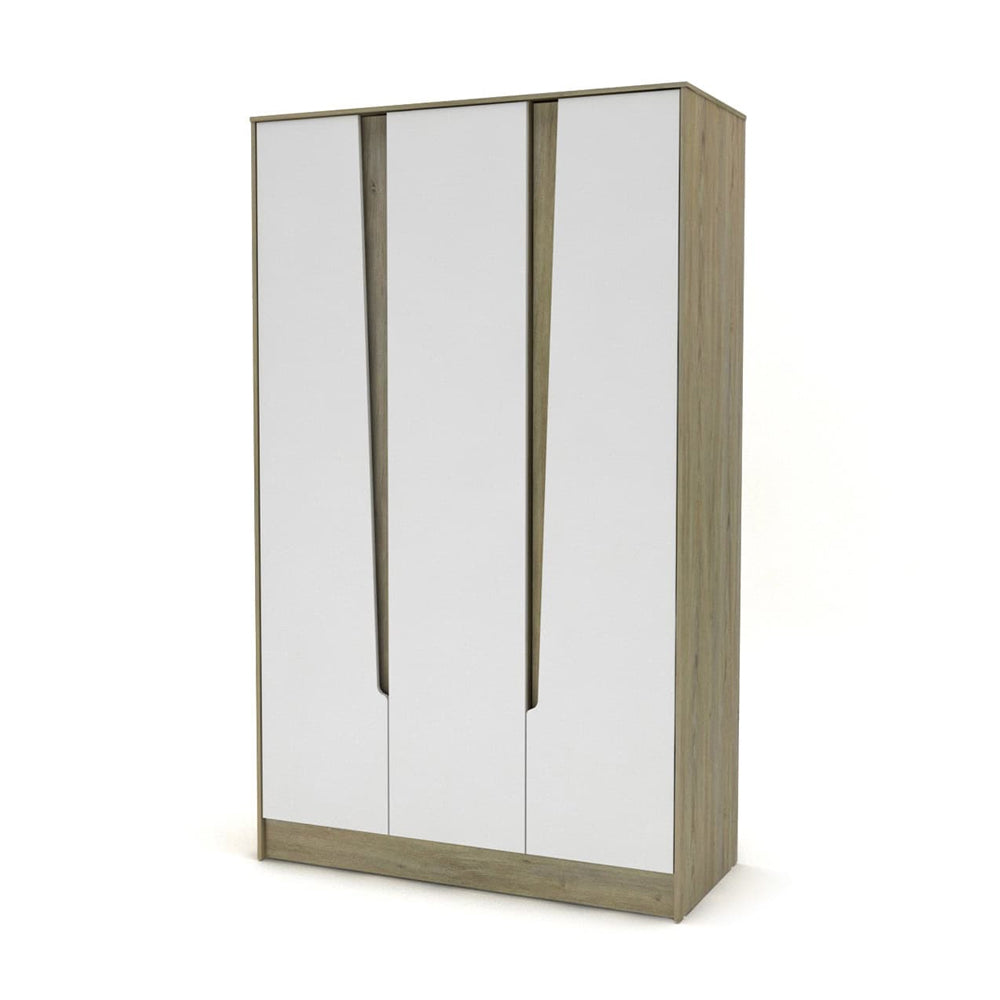 Modern 3 Door Wardrobe – Oak Ash and Snow White MW107