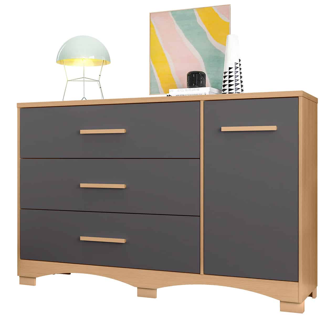 Modern Chest Of Draws Doble With Shelves – Nature/Titanium