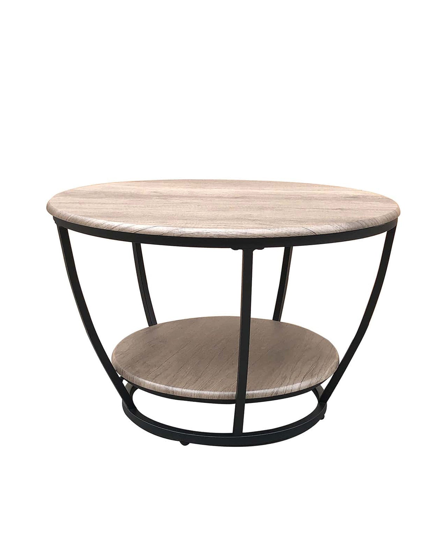 MW990 Round Minimalist 2 Tier Oak And Black Coffee Table