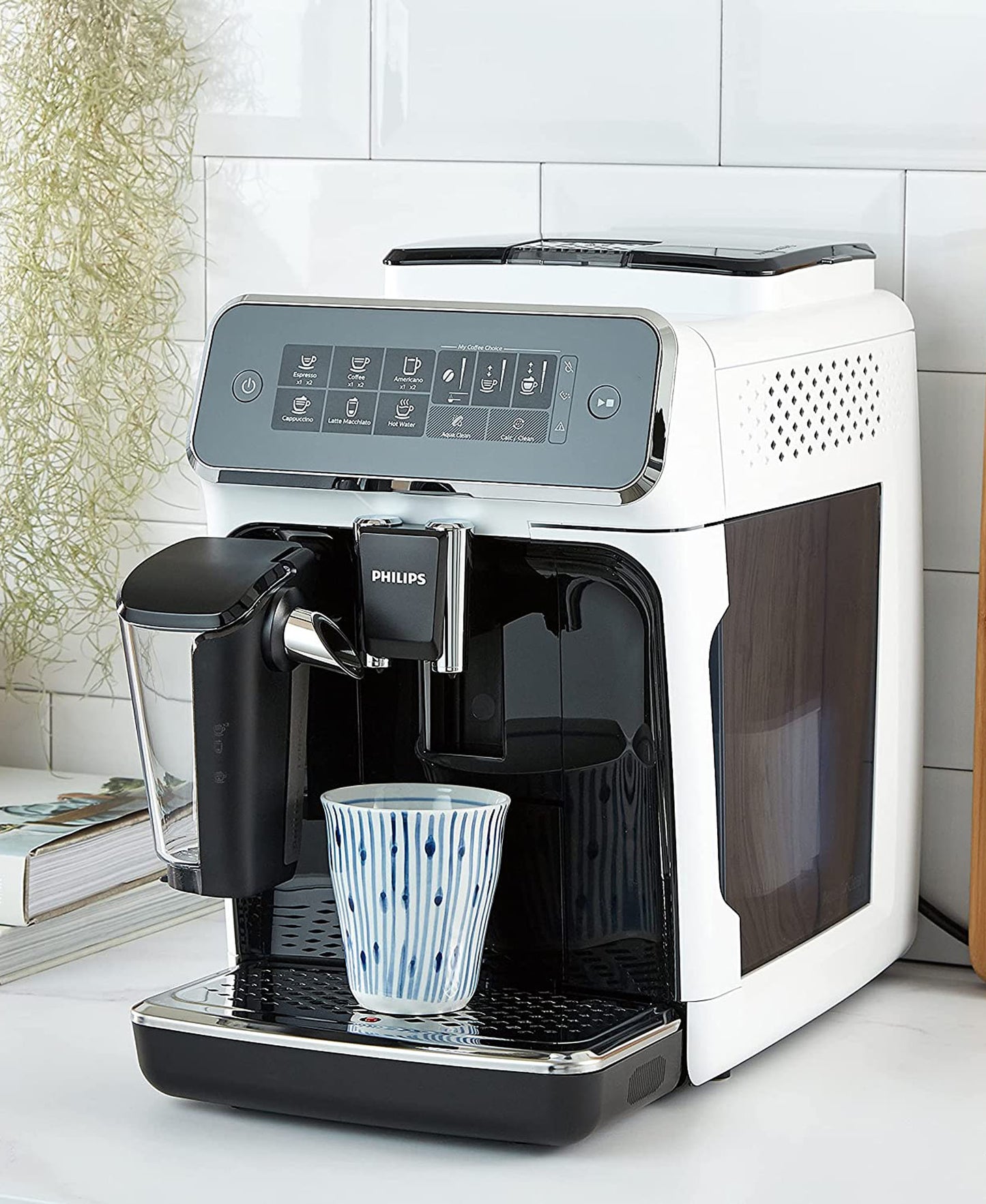 Easily make aromatic coffee varieties like Espresso, Coffee, Cappuccino and Latte Macchiato at the touch of a button. LatteGo tops milk varieties with silky smooth froth, is easy to set up and can be cleaned in as little as 15 seconds. 5 delicious fresh bean coffees, easier than ever. LatteGo, the fastest to clean milk system ever.