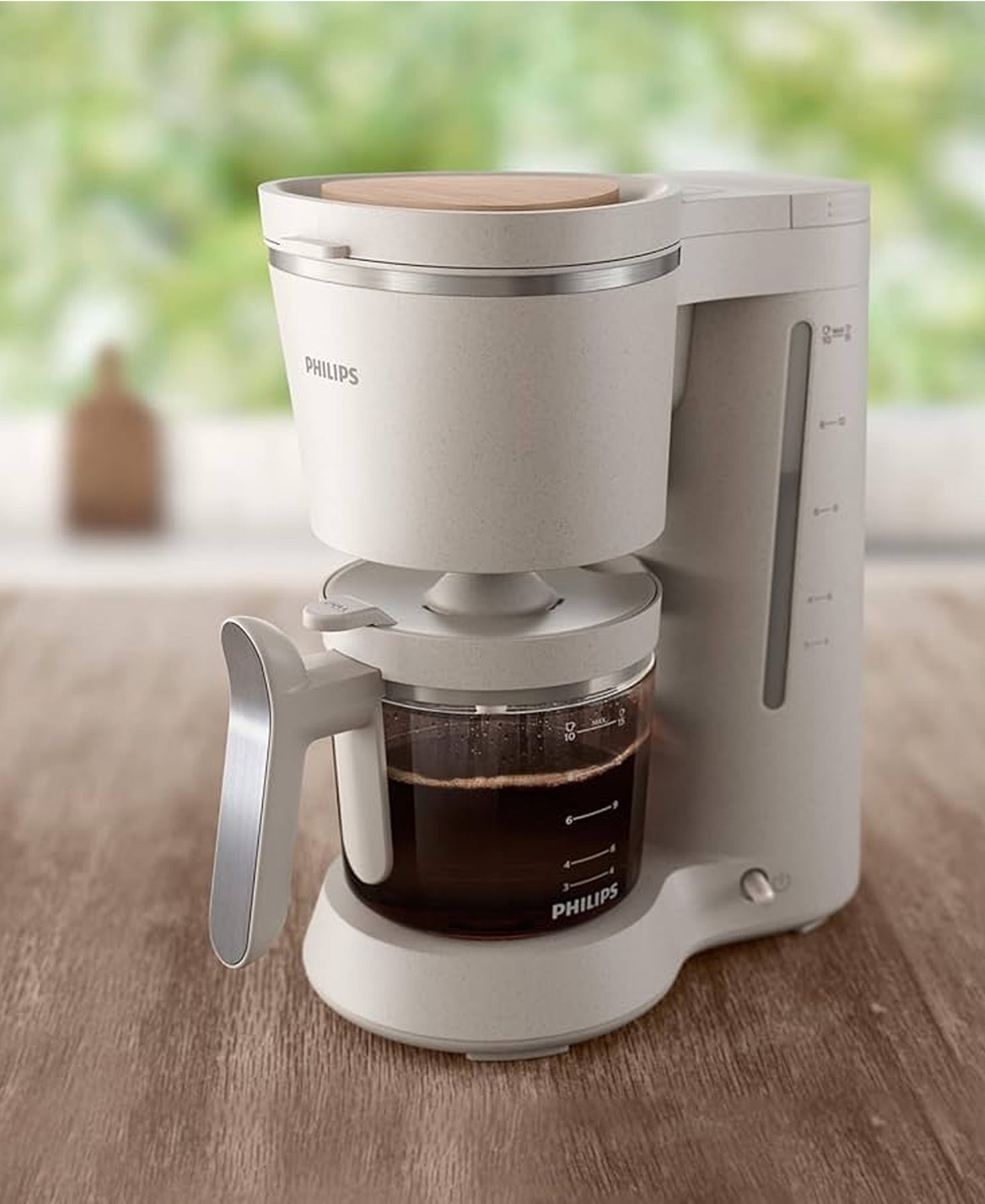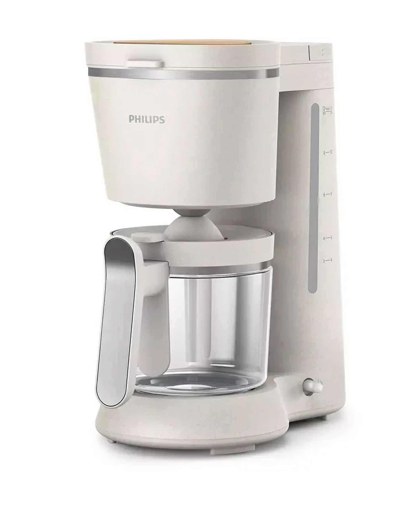 Enjoy your coffee's great taste and aroma every morning, with elegant style and impeccable performance. Sustainably designed with 100% Bio-based plastics. The smart nozzle inside the jug circulates the inflowing coffee evenly throughout the jug, for an optimal, consistent aroma, from the first to the last cup. This coffee maker can brew from 2 cups or up to 10 large or 15 small cups of coffee, with a maximum capacity of 1.2 liters.