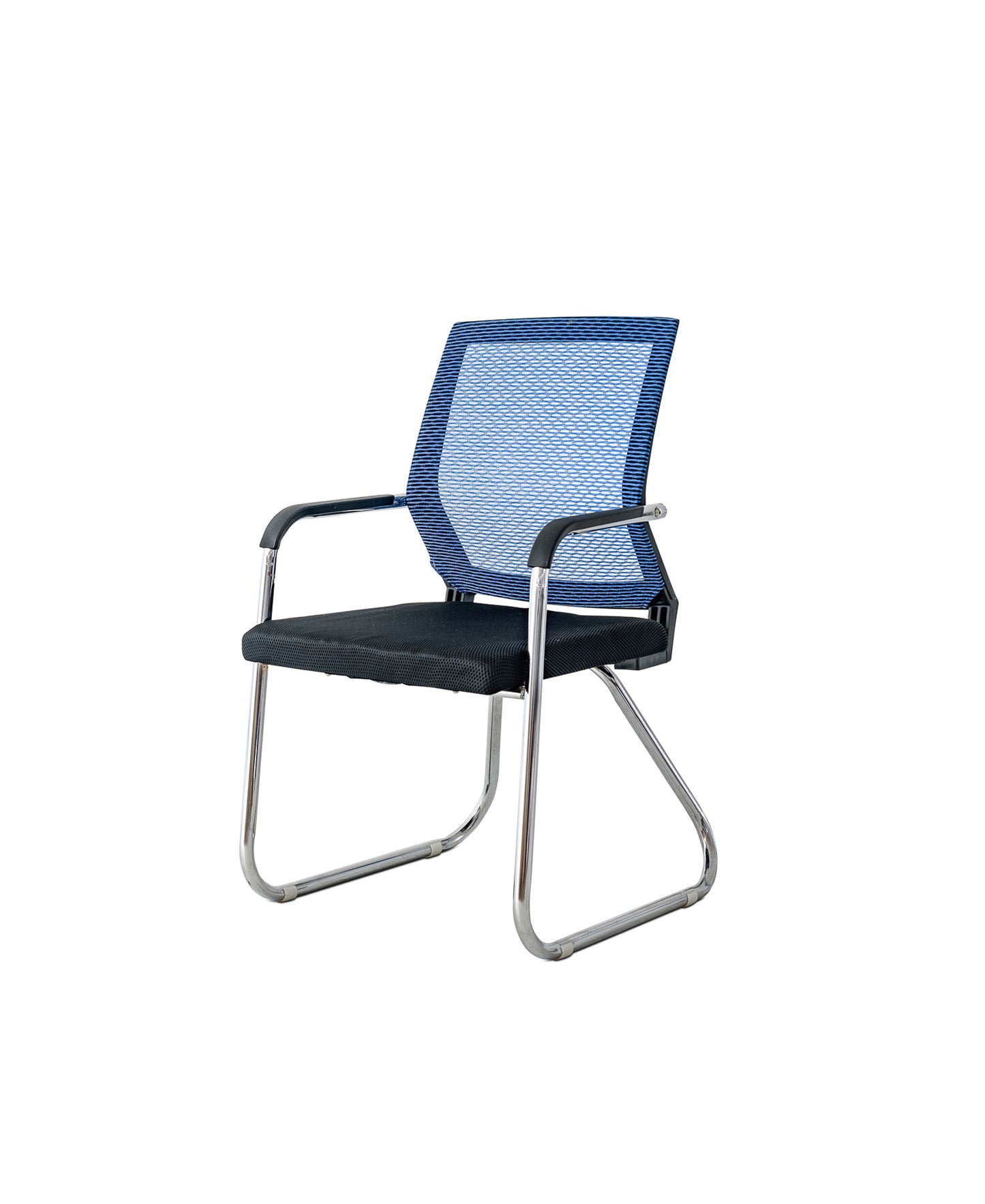 A smartly simple visitor chair designed with a mesh back rest with black and chrome arm rest and chrome legs, chair comes in different colours.
