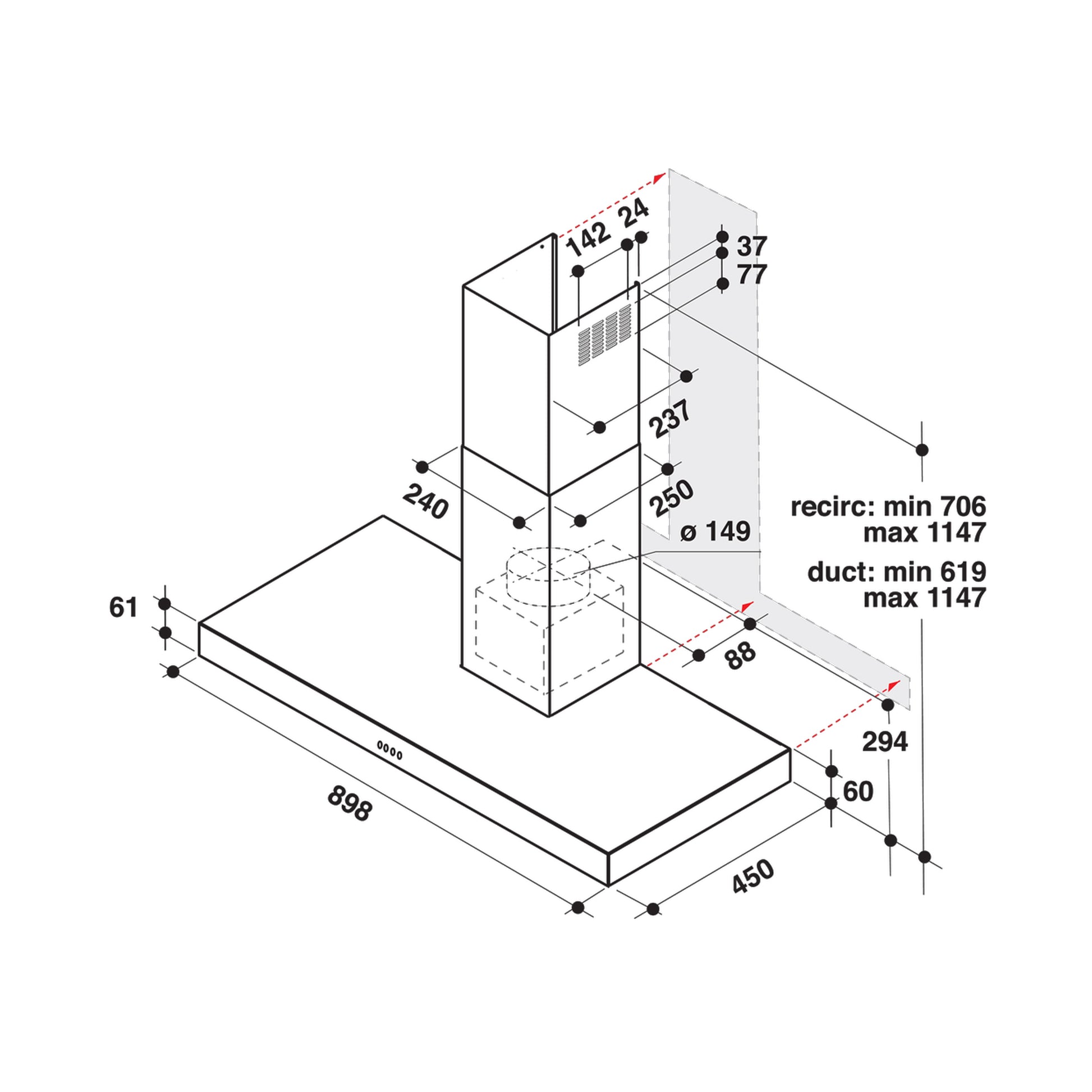 Whirlpool wall mounted cooker hood - AKR 559/3 IX